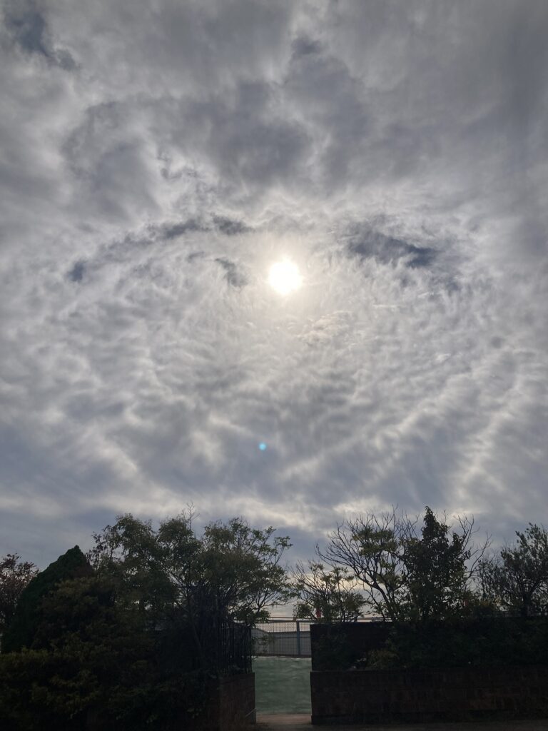 お弁当を食べ始めようとしたら、お日様が出てきてくれてとてもあたたかくなりました。