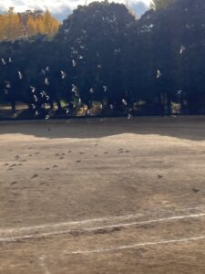 落ち葉シャワーをしたり、坂道を走って降りたり、ネットに乗ったりと
