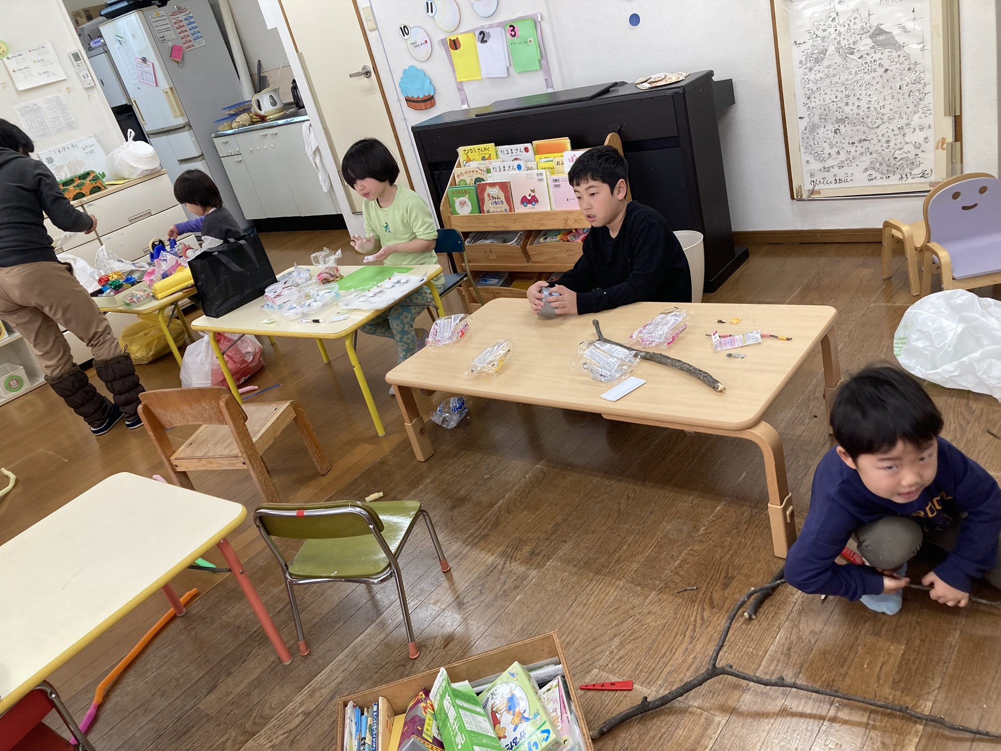 小さい子はそのままご飯で、大きい子は外に走りに行きました。タマムシもいたり、強風で青ドングリもたくさん落ちていました。しお弁はアジフライが人気でした!