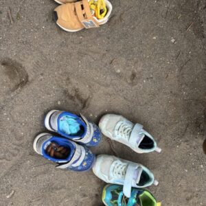 自分で裸足になりたくて、友達も真似してそうして、そんな気持ちを尊重しているからか?靴の中に靴下をいれ、玄関のように一つのところに並べて置いておくのも、よいなぁと感じています。