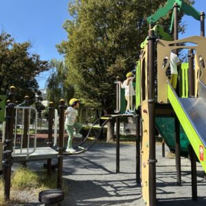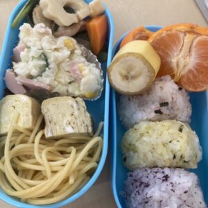 公園についてお弁当開きです。今年の子どもたちは、誘い合う言葉が多く「○○君、一緒にたべよう!」「隣で食べよう」「食べ終わったら遊ぼう」と約束をしています。それがちゃんと実行されているかどうかはそうでもないのですが、誘い合うというのは『大好きだよ』の意味なのかな、とも感じます。