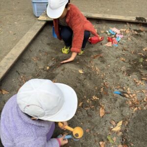お砂場で山を作ったりして遊びました。