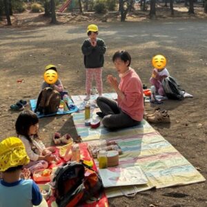 地面(地球)に腰を下ろして、風と光を感じながら、みんなで食べるのは自然と一体感があります。12月なのであと何回、外弁できるでしょうかね。