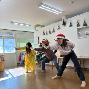 そしてお母さんたちによる余興の最中に、サンタクロースがプレゼントを持ってやってきてくれました。
