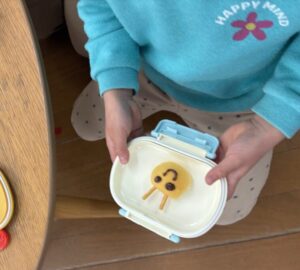 今日のしお弁は節分なのでちょっと特別!小さなパンに鬼の顔をチョコペンで書いて食べました!みんな大喜び!お家でもやってみてください。