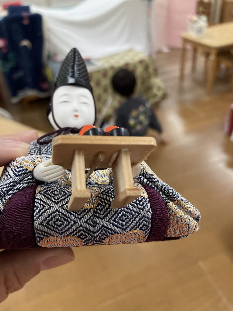 最初から最後まで、じっと見ていた年中Kくん。初めての事はまずは観察から入るので、きっと色々考察しながら見ていたと思います。お迎えで他の子が帰った後お雛様のそばへ行って触れてみたり近づいて見たりしていました。
