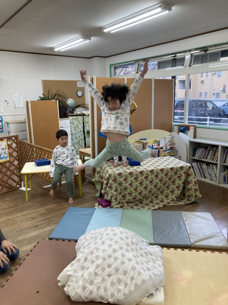 雛人形を飾った後は、忍者ごっこお部屋バージョン!で、大解放の時間も過ごしました。