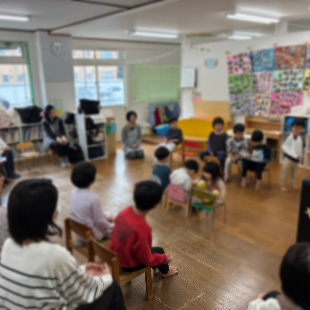 その後は大きくなったね会。順に前にでてもらい、アルバムをもらいました。みな嬉しそうです。年長さんから子どもたちへのプレゼント(折り紙)を渡しました。転園する子たちは最後になりますが、またチューリップルームに遊びにきてくださいね!