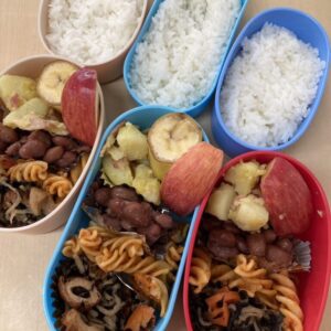 給食の盛り付けもやりませんでした。やらなくてもいいとわかって、ちょっとホッとしているようでも